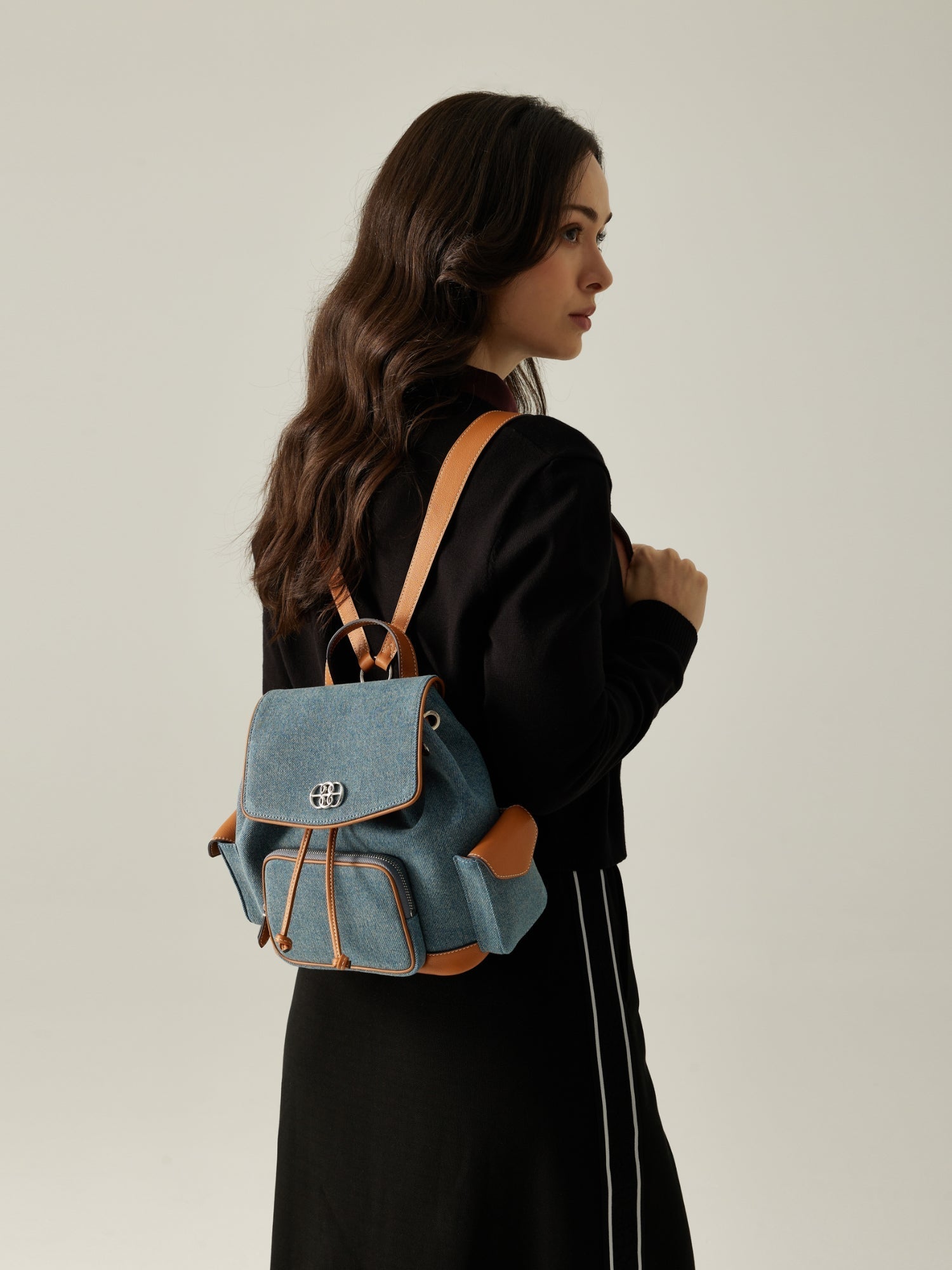 Chic casuals — the Lysandra Backpack is crafted Denim & Canvas Trim Fine Grain, offering functional convenience and contemporary flair. Style with effortless pieces that reflect a cool aesthetic.