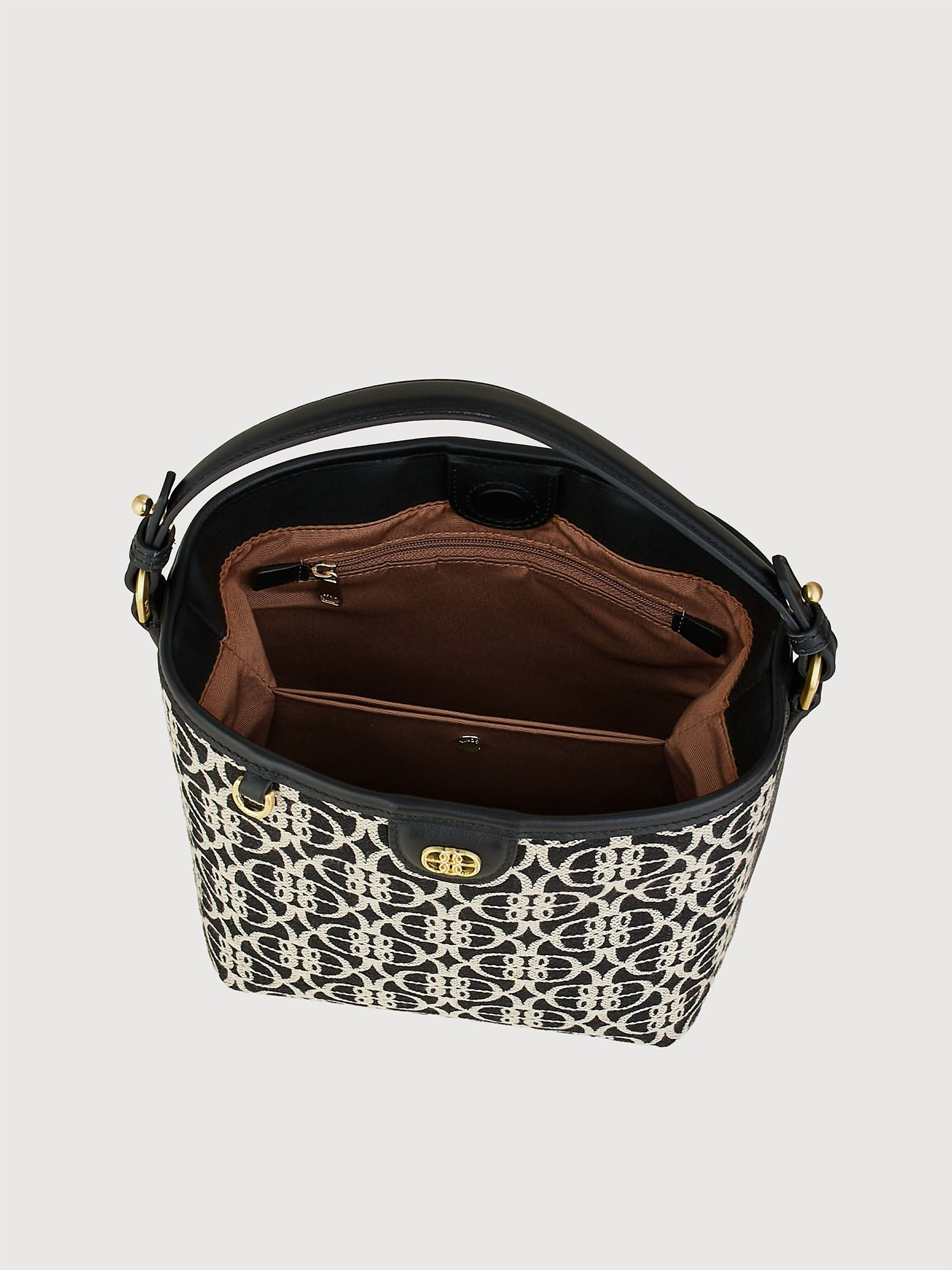 Chic modernity — the Nadia Monogram Small Shoulder Bag reflects a sense of feminine flair, rooted in contemporary luxury. With a Nappa Leather Trim Laluna Print Jacquard exterior, this stylish piece makes work and weekends a classy experience every time.