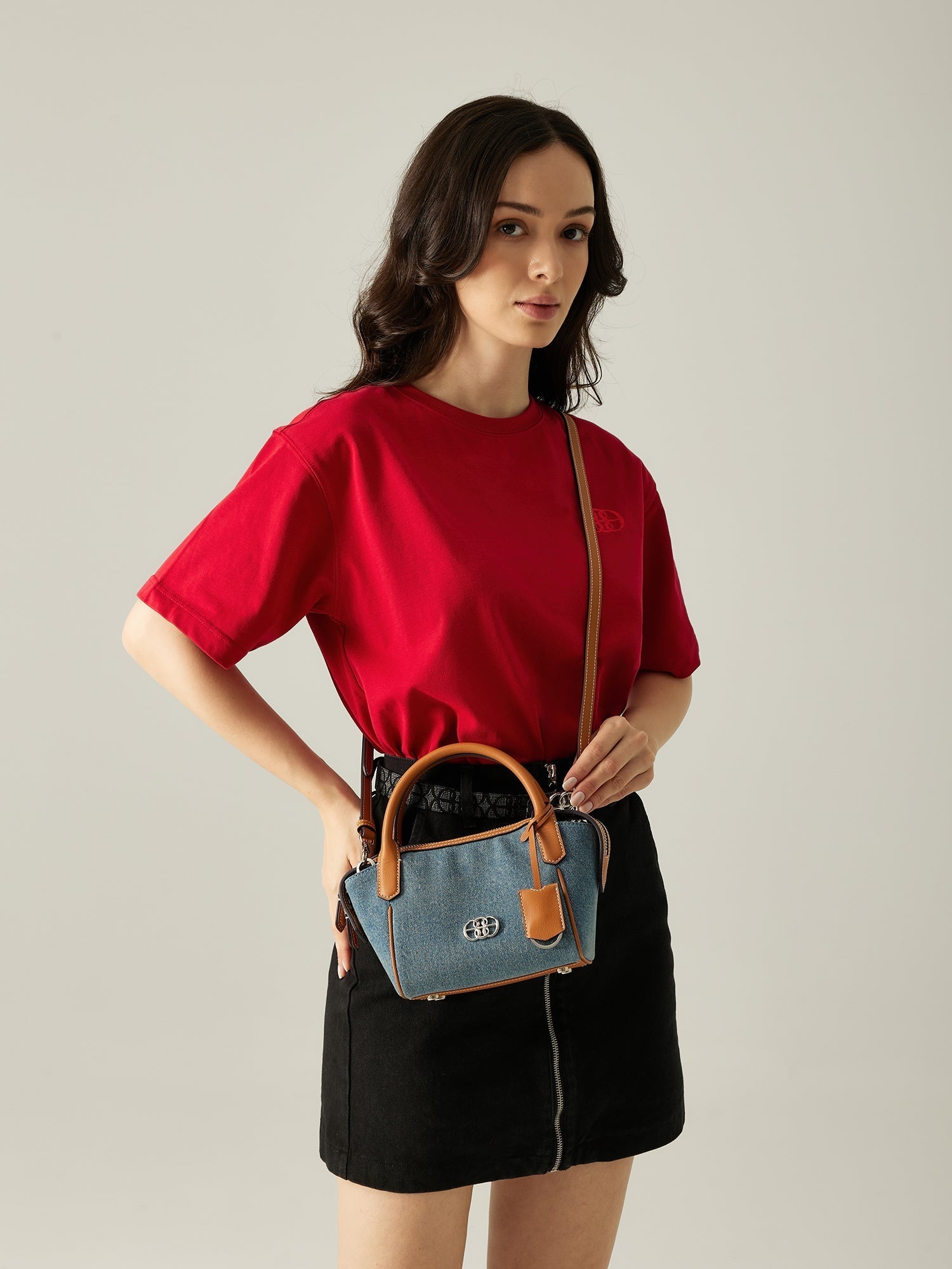 The Lysandra Small Tote Bag offers a silhouette crafted from Denim & Canvas Trim Fine Grain. Available with a versatile strap for effortless styling, this carryall exudes elegance and playful charm every time.